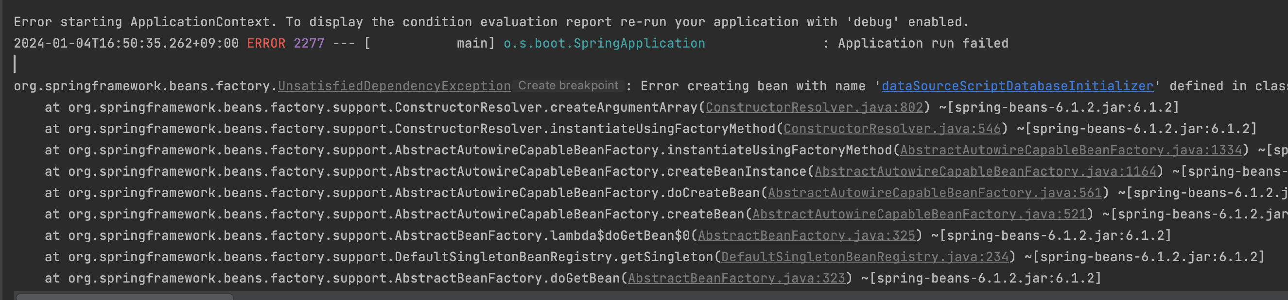 2. Error creating bean with name 'dataSourceScriptDatabaseInitializer' 에러 해결방법