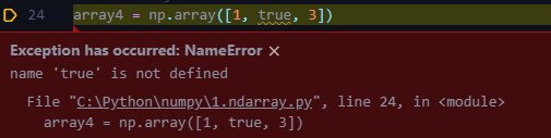 - 데이터 값은 숫자, 문자열, 불 등이 모두 가능합니다. 하지만, 하나의 ndarray 객체는 하나의 데이터 타입만 처리할 수 있습니다. (ex 하나의 ndarray 객체안에 int와 bool을 같이 사용할 수 없음)