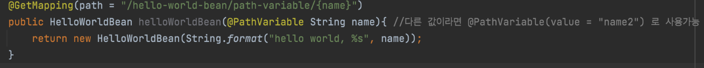 컨트롤러는 아래와 같이 가변 변수를 받을 수 있는 메서드를 추가한다.