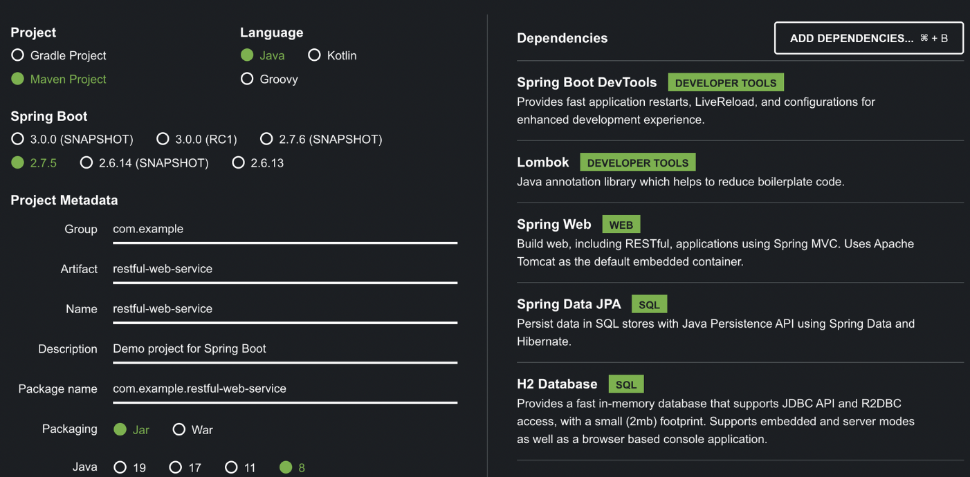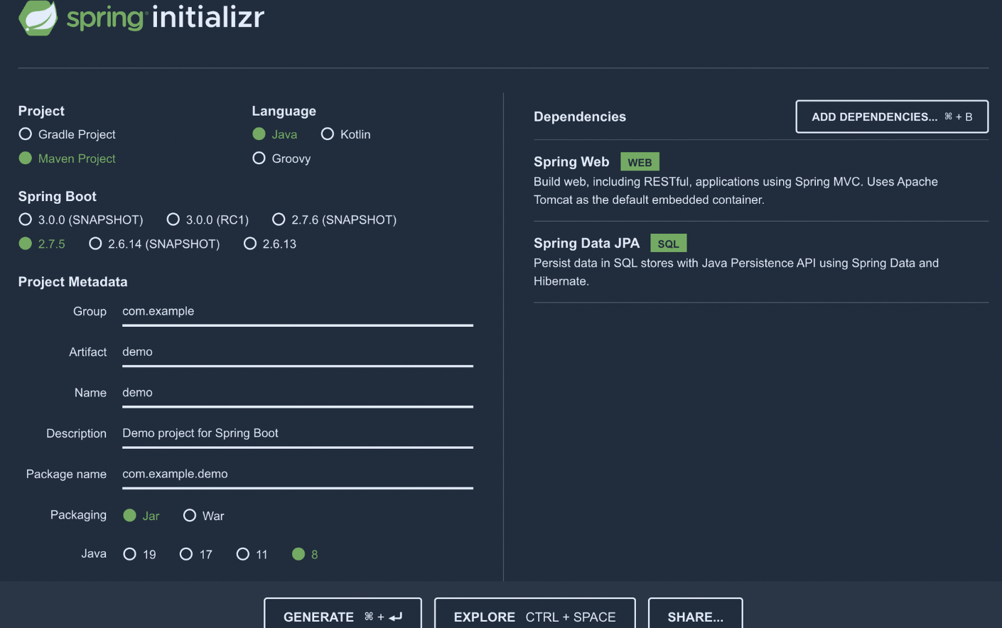 http://start.spring.io 에서 스프링 부트 시작할 수 있음